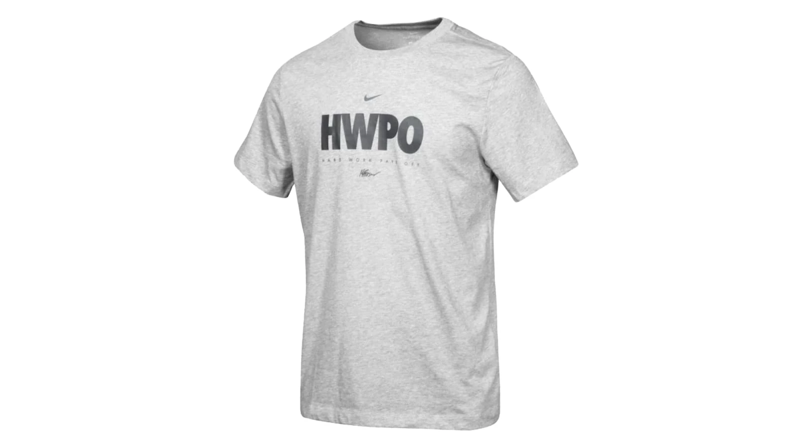 This version of Nike’s Dri-FIT Men’s Training Tee is inspired by 5x “Fittest Man on Earth” Mat Fraser, and features the letters HWPO across the chest, referencing Mat’s slogan: “Hard Work Pays Off.”