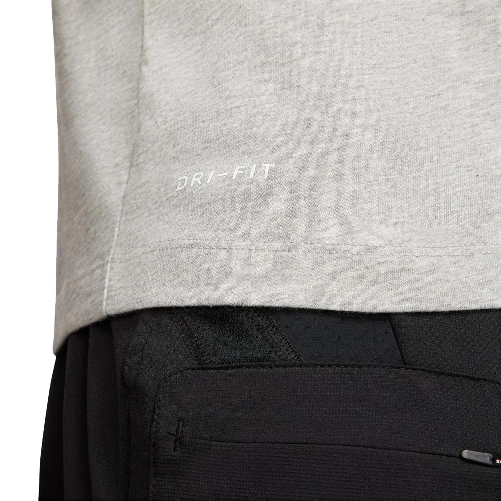 Available here in Heather Gray-1, this soft, flexible t-shirt is made from 100% Cotton fabric with Nike’s patented Dri-FIT technology to wick away sweat and keep you dry.