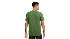 This short-sleeved men’s training t-shirt is made from a peached cotton-poly blend jersey fabric with Nike’s patented Dri-Fit technology to wick away sweat.