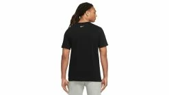 This short-sleeved men’s training t-shirt is made from a peached cotton-poly blend jersey fabric with Nike’s patented Dri-Fit technology to wick away sweat.
