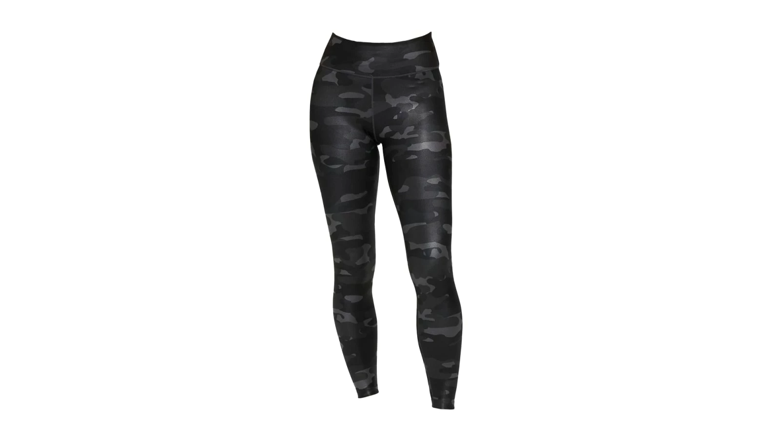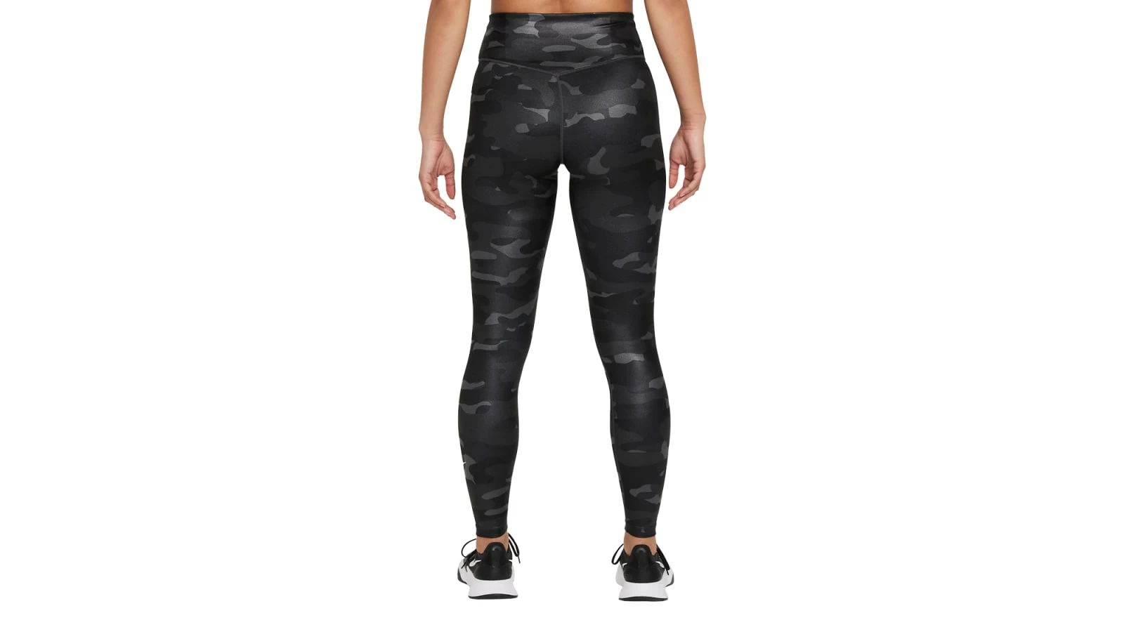 Nike’s poly-elastane Shine Camo Tights feature a non-sheer fabric (to keep you covered), seamless sides, and a contoured waistband with a V-shaped back to create a smooth silhouette.