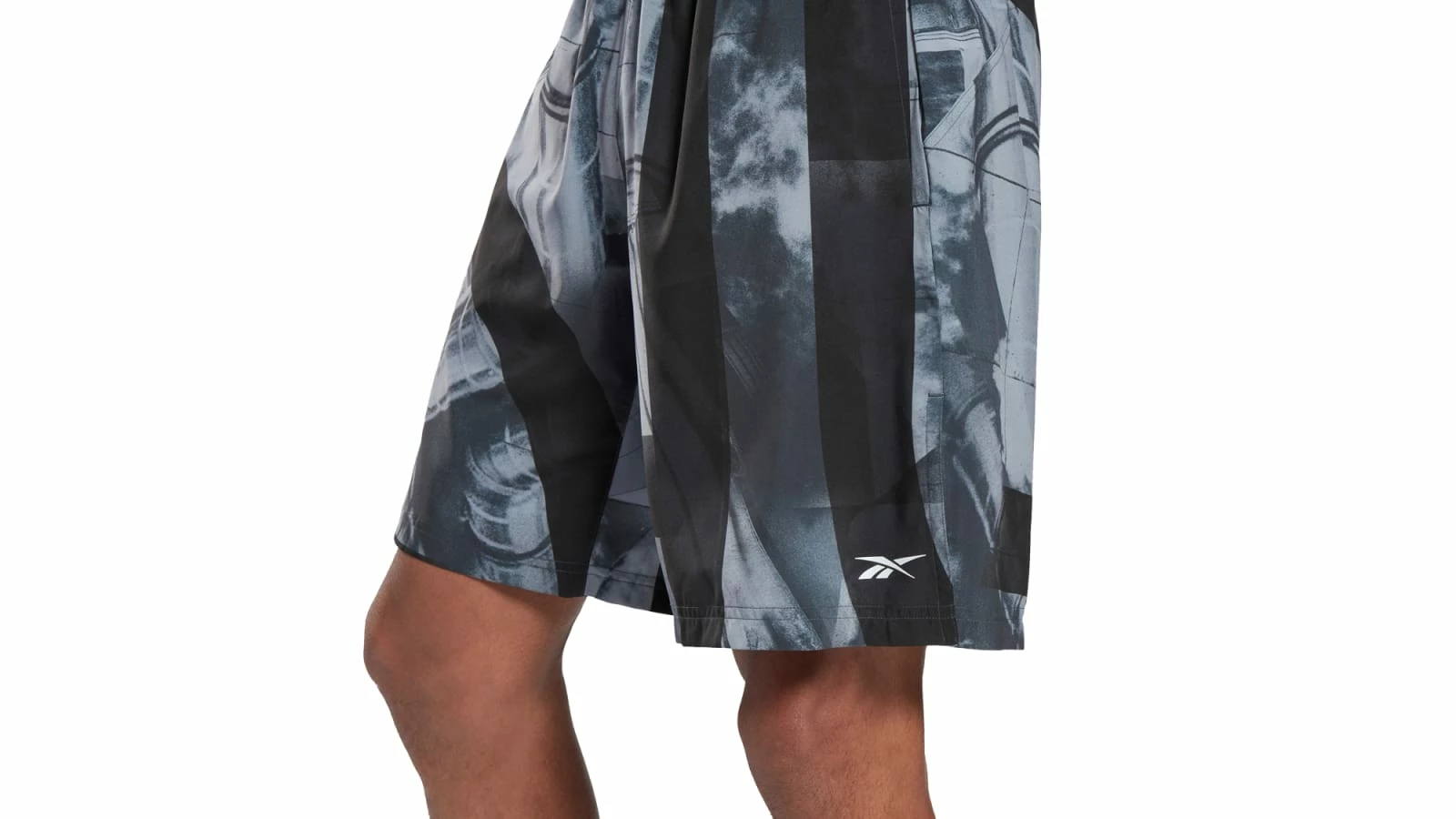 Available here in a Black allover print, the Men’s Austin II Solid Short from Reebok features a lightweight, woven poly-elastane fabric with an 8” inseam and high side slits for improved freedom of movement. Advanced sweat-wicking properties and a tailored athletic fit further ensure that this short also stays cool, comfortable and breathable throughout any workout.
