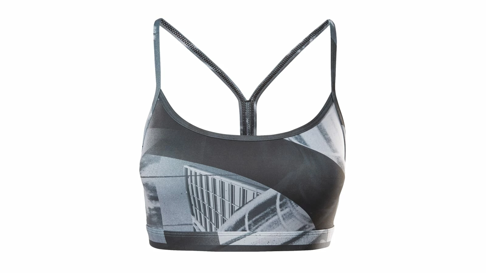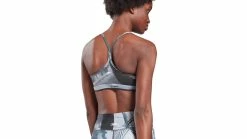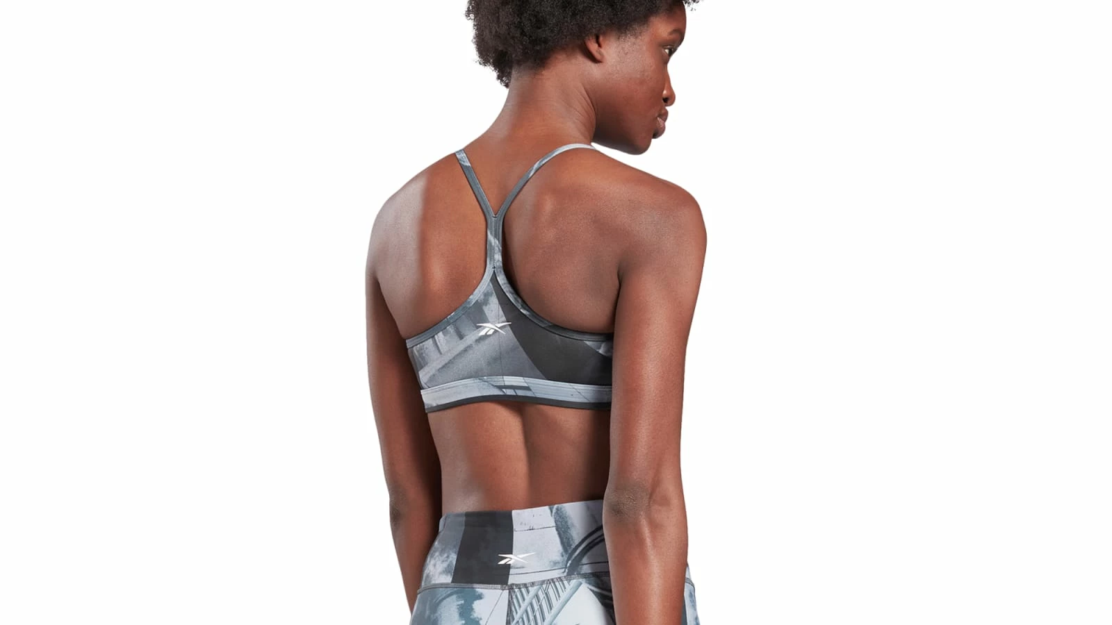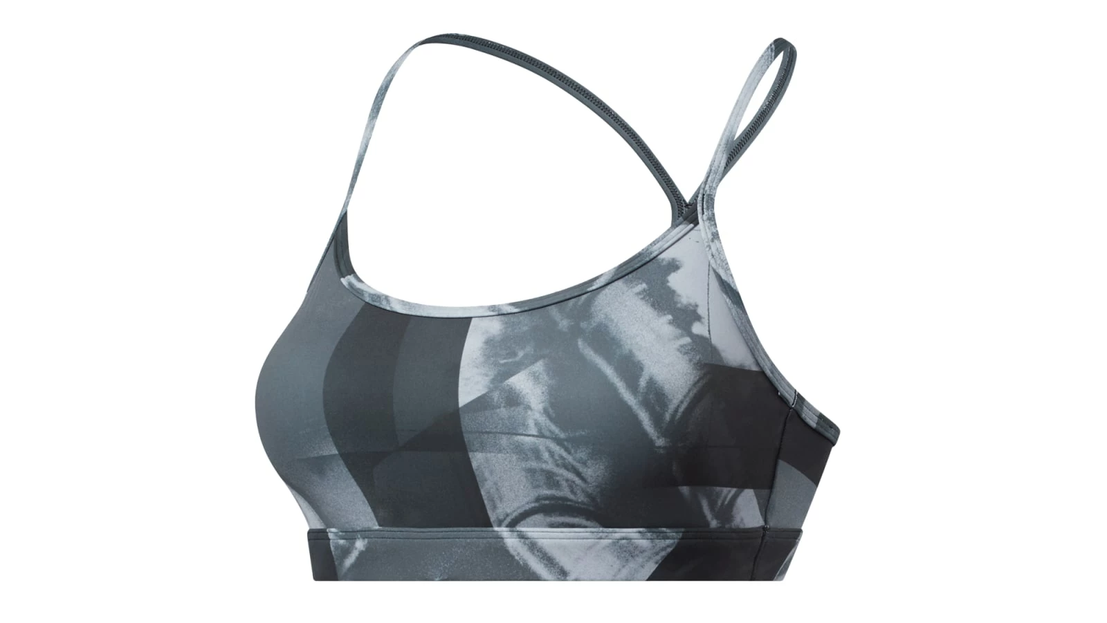 Available here in a Black allover print, the Reebok Skinny Bra offers optimal comfort, flexibility, and breathability for medium-impact workouts. The polyester-spandex blend construction and Speedwick technology help wick away sweat to keep you dry, while the skinny straps, round neckline, and removable pads create a light, contoured, customizable fit.