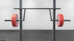 It’s rackable so athletes can train with any of our power racks, squat stands or Rigs. The bar is farther in front of the midline, placing the emphasis on the hamstrings and the lower back. It allows the upper body to stay vertical, training proper form to get max depth and explosiveness through a full range of motion. This means that you can get stronger, fast, while better preparing your body for safe, effective training under any type of bar.
