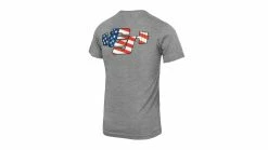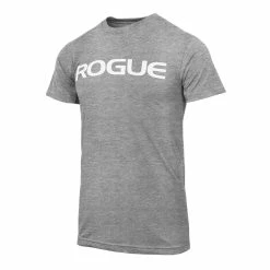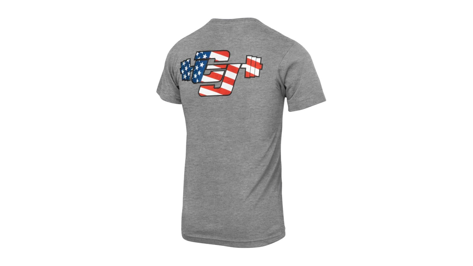Available here in gray, the flexible, tri-blend men’s tee includes the Rogue logo in white across the chest and an original stars-and-stripes “CJ” barbell graphic on the back.