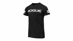 Rogue’s official Martins Licis t-shirt pays homage to the 2019 World’s Strongest Man with a one-of-a-kind design. This black cotton-poly men’s athletic tee features the Rogue logo across the chest in white, the U.S. flag and Latvian flag printed on the sleeves, and an exclusive blue Dragon shield graphic on the back, inspired by Martins’ nickname on the Strongman circuit, “The Dragon.”