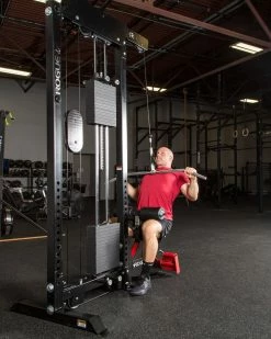Our latest Monster Lat Pulldown introduces larger 6″ pulleys (vs. the original 3.5″), which help reduce friction and prolong the life of the cable. We’ve also upgraded the cable itself (USA Mil Spec) and added protective UHMW plastic to the tubes and pulley assemblies that the cable passes through. The eye (where the cable connects and carabiner clips on) is now machined in house from stainless steel, and all orders include a long term lubricant for the guide rods, allowing the weight plates to slide more smoothly.