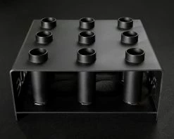 Rogue’s fully redesigned 9 Bar Holder is unlike any other vertical barbell holder or storage rack in the industry. Manufactured in the USA, this compact floor unit features nine DOM steel tubes (drawn over mandrel) secured within two laser-cut sheets of 7-gauge steel. Because DOM tubing is noted for a smooth internal finish free from burrs and weld spatter, they’re ideal for protecting the sleeves of your barbells from unnecessary scratches.