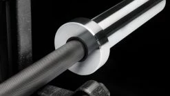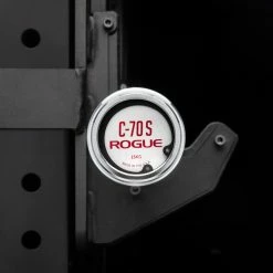 As an added benefit of its design, the C-70S can be racked conveniently on most standard power racks / squat stands. It should be noted, though, that the 8.875” of loadable sleeve length is roughly half that of the Ohio Bar (16.4”) and slightly less than the original non-rackable C-70 Bar (12”). There is no center knurl, and the Rogue logo is included in the center of the shaft as part of the Cerakote finish.