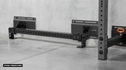Similar in concept to The Strip, the Monster LITE version of the horizontally-oriented Heavy Rail features 5/8” holes spaced 2” apart, with a total of 43.25” of usable length for attaching compatible Monster Lite Series accessories, including the Landmine, Plate Storage Channel, and Single Bar Holder (a Monster Series version with 1” holes is sold separately here). A single Heavy Rail opens up countless unique set-up options, from dual Landmines to side-by-side storage for up to four Trap Bars. Athletes can also stand on the rail for calf raises, anchor their feet during sit-ups, or attach resistance bands and mobility tools via the provided anchor points in the end brackets.