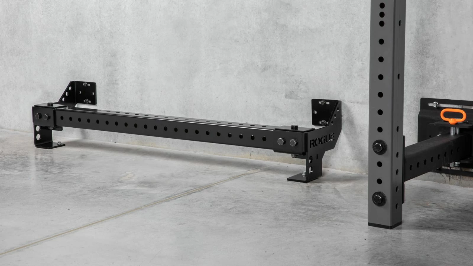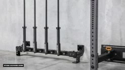 Rogue initially developed this patent-pending accessory for use in the training facility of the NHL’s Columbus Blue Jackets, and it’s now been refined for almost any type of gym layout, with mounting points spaced at 48” to fit on standard 16”-on-center wall studs. The space efficient Heavy Rail extends just 11” from the wall (11.75” with optional stringers) and measures 7-⅛” in height (from the floor to the top of the steel tube).