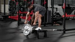 Once the athlete has loaded their desired weight on the elevated bar, they can establish their proper foot placement on the footplates (which are set at a fixed incline angle of 4 degrees), get into a squat position, then perform rows either by holding the barbell itself, or by using one of our designated Landmine Handles.