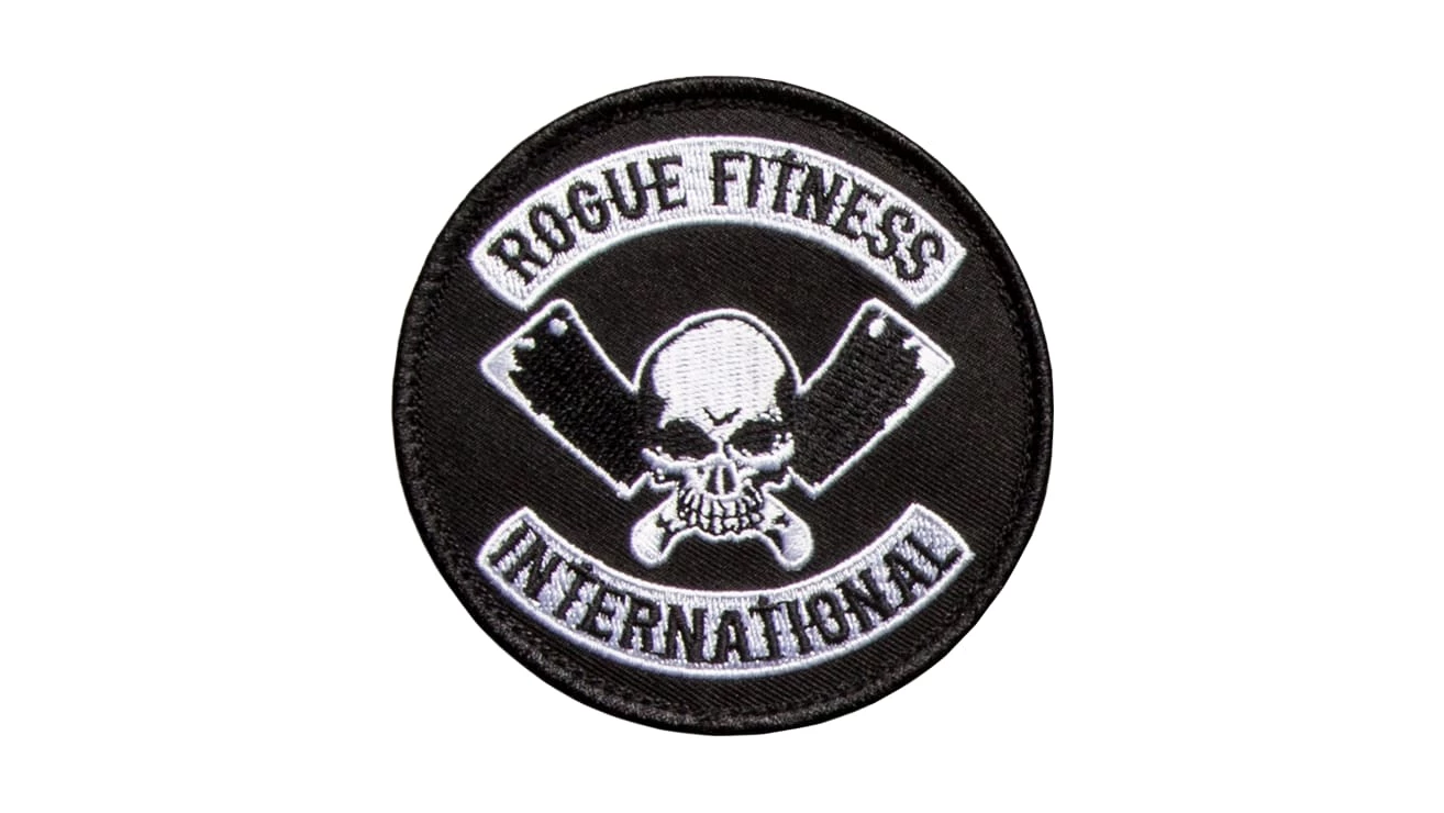 This round 3.5” diameter patch features the Rogue Fitness International skull + butcher knives logo in black and white.