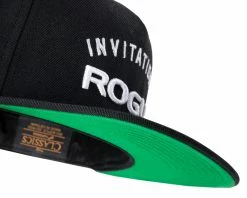 Available in a limited run, this exclusive Rogue Invitational snapback baseball cap features a white-on-black design with the Invitational logo on the front.