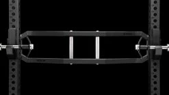The 41” frame portion of the bar is built from 1.5” x 1.5” 11-gauge steel tubing with 1/4” plates, a machined socket, and a matte black powder coat finish. The cambered shape with 3.5” of drop allows for a greater range of motion when using the outer handles on certain movements (such as bench or rows), and also helps to improve stability, as the bar’s center of mass–relative to hand placement–is lower.