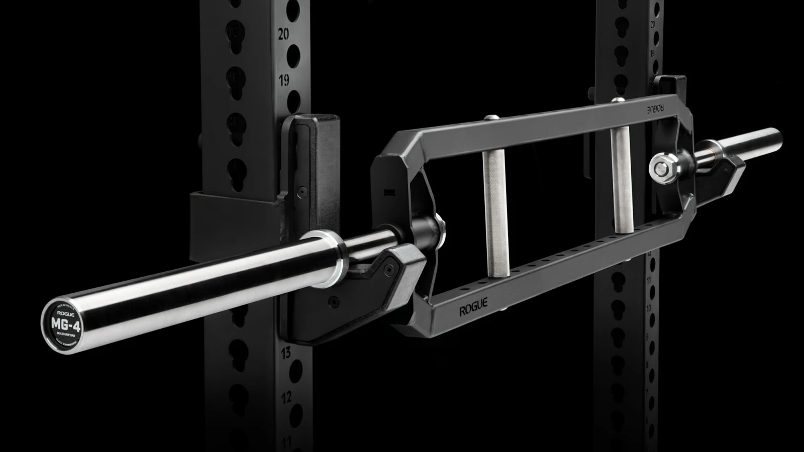 The MG-4F is the latest evolution of the Rogue specialty multi-grip barbell. Available here with a flat steel frame (a Camber and Narrow Camber version are sold separately), this patent pending design offers two major advantages over other multi-grip bars on the market:
