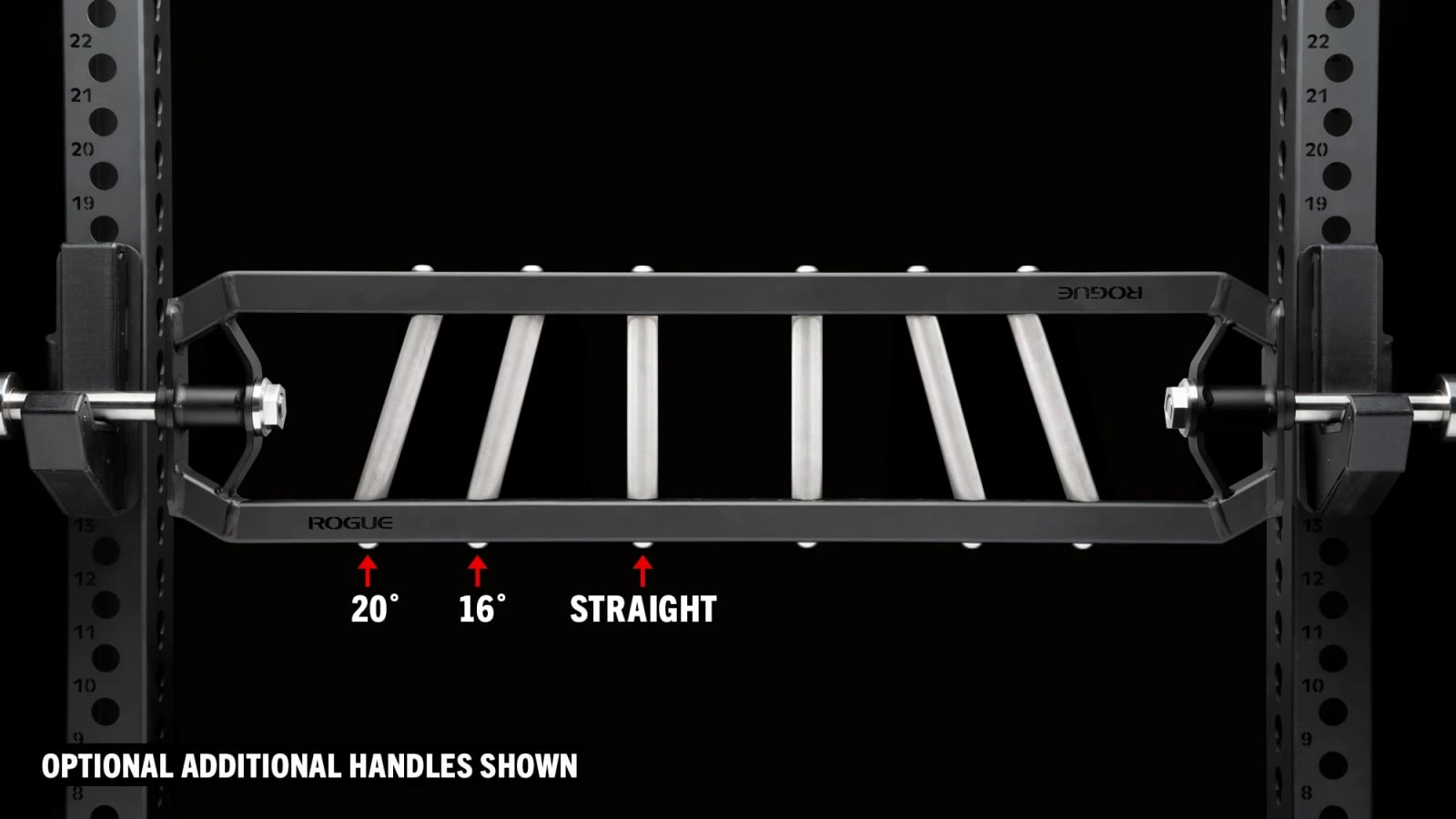 All handle types have the same knurl pattern as our Ohio Bars and can be added to the frame at 2-inch intervals, meaning that a set can be functionally spaced anywhere from a minimum of 6” to a maximum of 26” apart. This enables athletes to customize their bar for multiple movements—from close grip presses and triceps work to biomechanically optimized grips at shoulder-width and beyond.