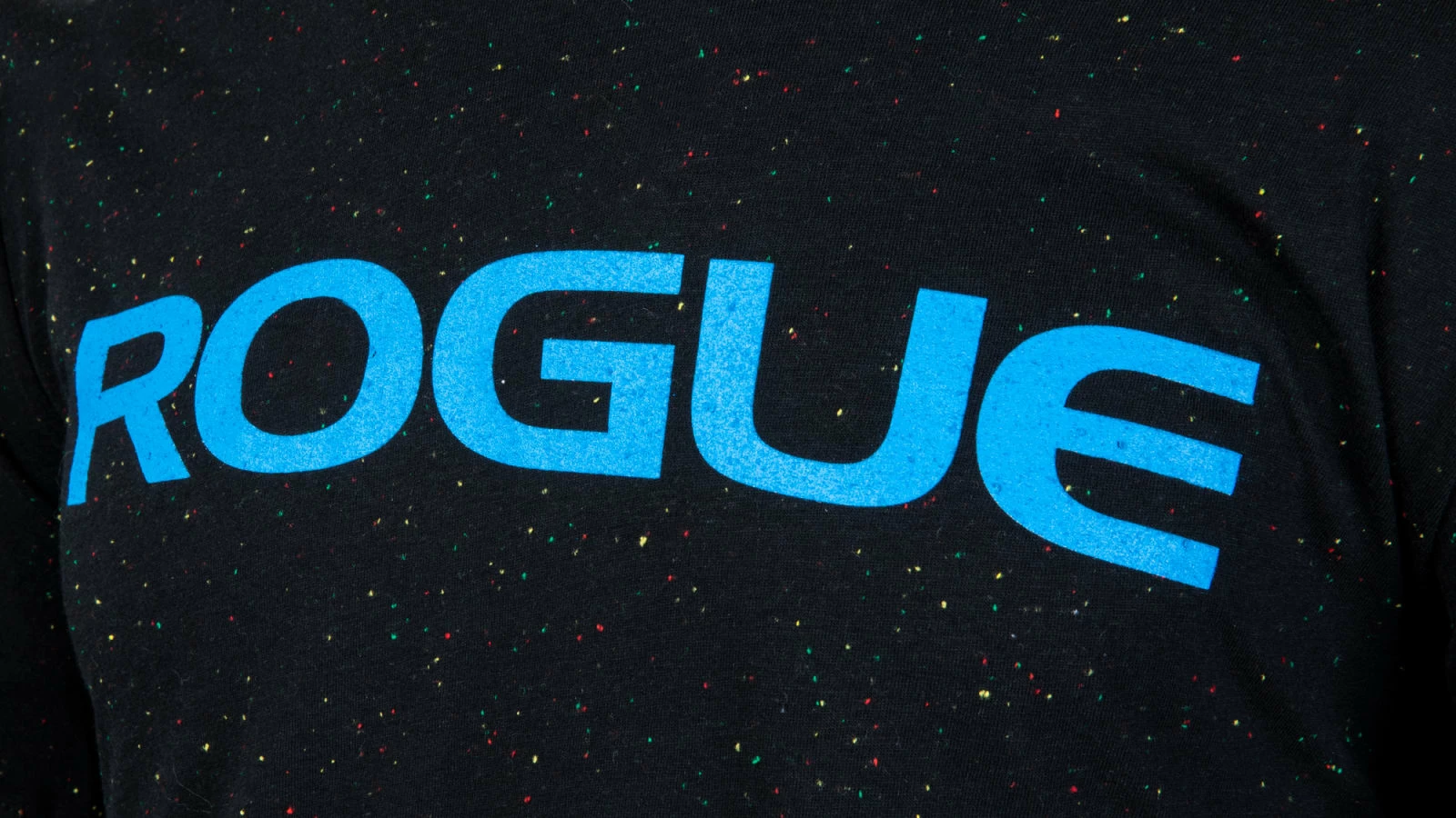 The Rogue “Speckled” T-Shirt is inspired in part by the look of flecked bumper plates, with specks of extra color creating a unique textured effect.