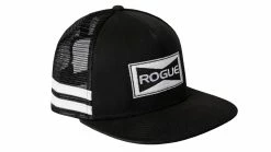 The design available on this page is black with a striped-white back panel and the Rogue logo in black on white.