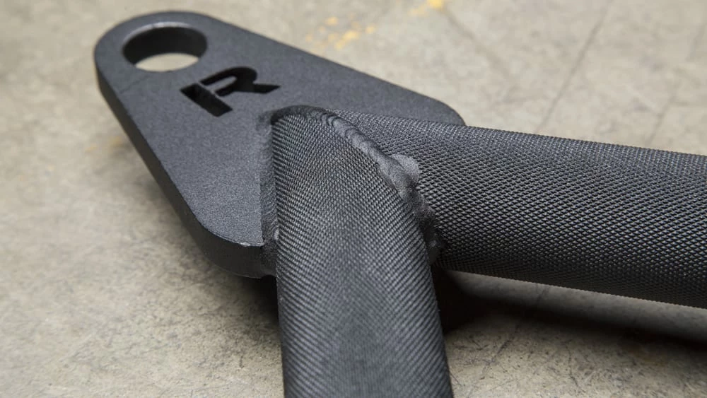 The handles themselves measure and 1.31″ in diameter (33MM), and feature our signature black textured powder coat finish for a firm grip. A 0.375″ thick tab at the top of the attachment includes a laser-cut Rogue “R” logo and a hole for connecting to your pulldown machine. All orders ship with a black carabiner included.