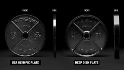 Continuing our mission to bring quality cast iron plate production back to America, Rogue’s USA Olympic Plates are, in our opinion, the finest series we’ve ever developed. Each plate, from the 55LB increment down to the 0.25LB change plate, features a slim profile, durable E-Coat finish, and a unique 4-surface machining process that ensures it fits securely on the bar, is uniform in diameter, and sits flush against other plates when loaded.