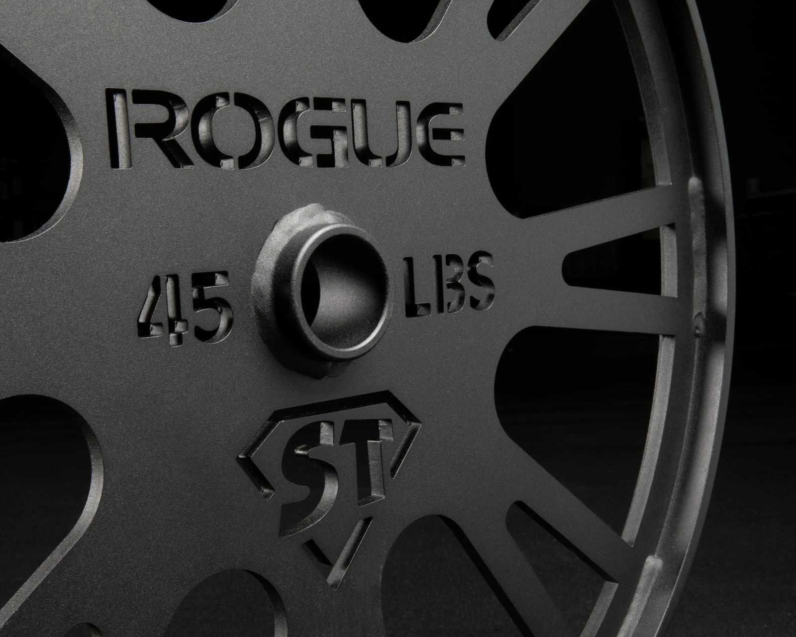 Co-developed with award-winning powerlifting coach Mark Bell, Rogue Wagon Wheels represent a new innovation in deadlift training—a way to do block pulls without the blocks. The project started with a simple question: does a 45LB plate have to be the standard 450MM in diameter? Once the clear answer was “no,” we set to work with Mark to create a durable, over-sized 45LB plate that could produce many of the same essential benefits of using blocks.