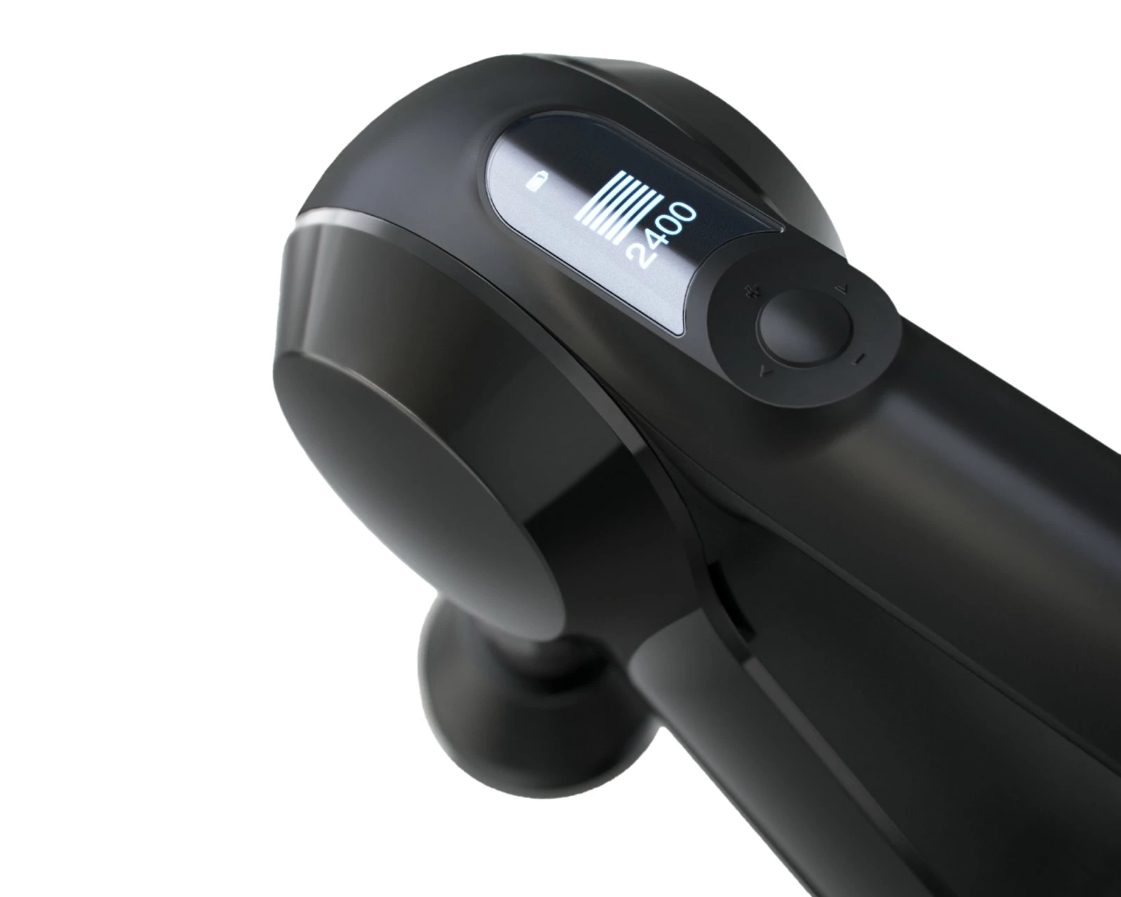 The TheraGun Elite is a fourth generation, premium percussive therapy tool, powered by advanced QuietForce technology. The device’s uniquely insulated, brushless motor now runs 75% quieter than the previous generation; with less noise than a standard electric toothbrush. At the same time, the Elite still has an amplitude of 16mm, calibrated to reach 60% deeper into muscle (at 40 times per second) than the average electronic massager.