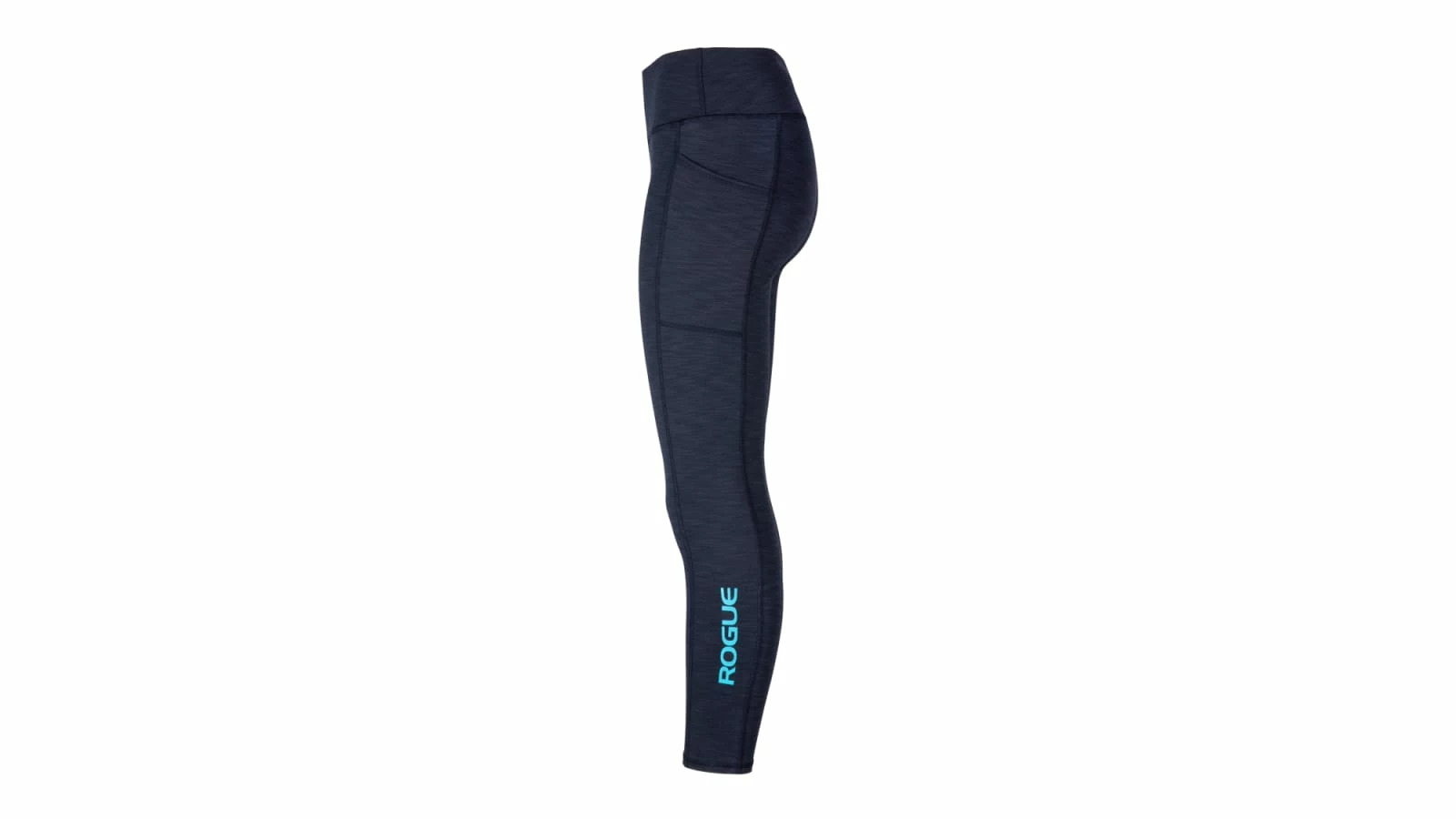 Available here in Navy with Rogue branding, these leggings also contour to the body for a compression-style fit without runs or curling at the edges. Convenient side pockets offer small item storage and a wide waistband creates a reliable hold through high intensity movements.